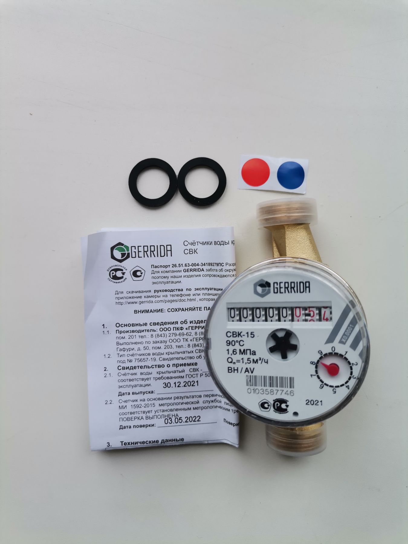 Счетчик воды 1/2" GERRIDA СВК-15Г универсальный, бытовой